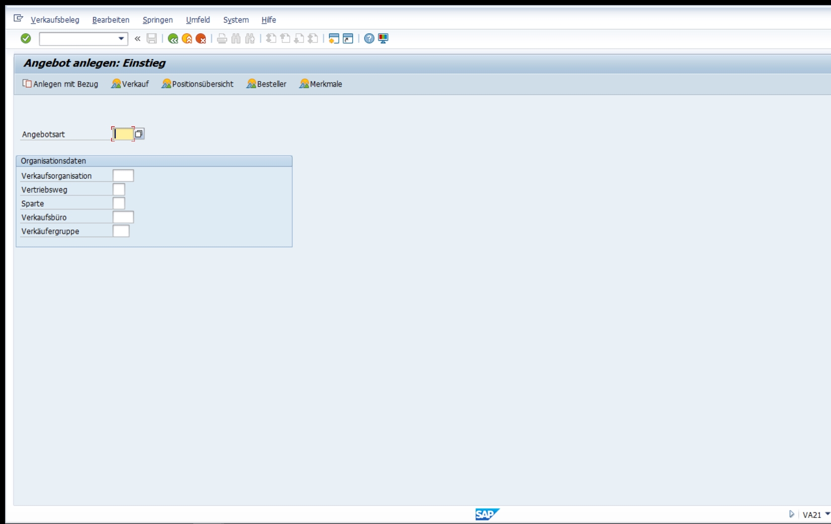 The SAP transaction code VA21 refers to the SAP report SAPMV45A. The SAP short description for transaction code VA21 is "Create Quotation".