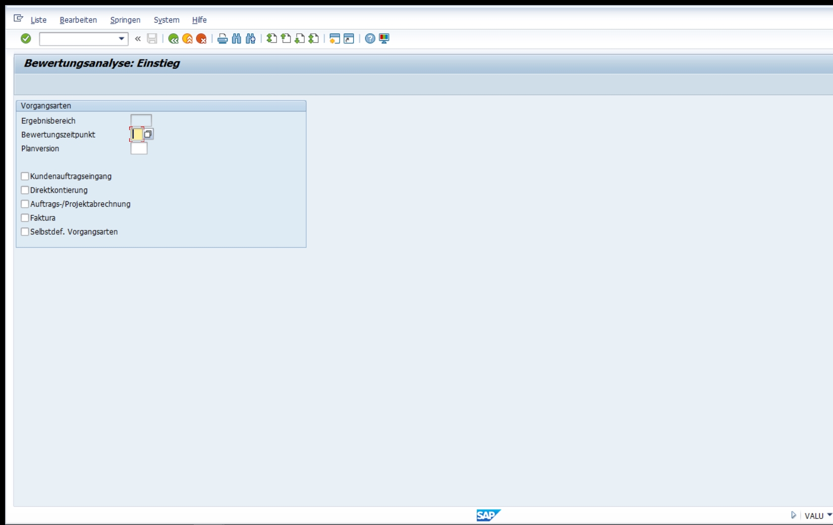 The SAP transaction code VALU refers to the SAP report SAPMKECM_VALUATION. The SAP short description for transaction code VALU is "Valuation Analysis".
